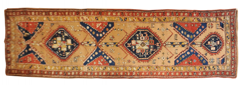 Kette: Wolle; Schuss: Wolle und Baumwolle; Flor: buntfarbene Wolle; Technik: Senneh-Knoten