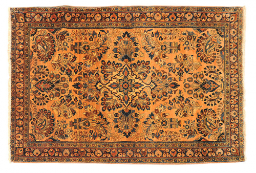 Kette: Baumwolle; Schuss: Baumwolle; Flor: Korkwolle Karakul; Technik: Senneh-Knoten
