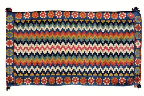 Kelim Verzahntechnik, Kette: naturfarbene Wolle, Schuss: buntgefärbte Wolle