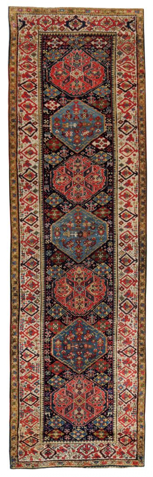 Kette: Wolle, Schuss: Wolle, Flor: Wolle, Technik: Sennehknoten
