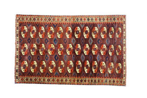 Kette: Wolle, Schuss: Wolle und Ziegenhaar; Literatur: Ullrich Schürmann, Turkmenische Teppiche aus Mittelasien