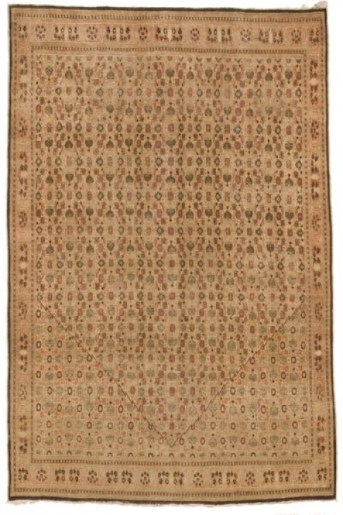 Flor: Wolle Kette: Baumwolle Schuss: Baumwolle Technik: Sennehknoten Knotenzahl: 40 pro 10 cm Kette 70 pro 10 cm Schuss Schirasi: 2fach Baumwolle Abschlüsse: festoniert