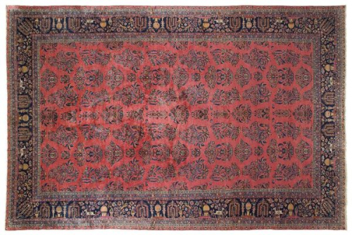Flor: Kurkwolle Kette: Baumwolle Schuss: Baumwolle Technik: Sennehknoten Knotenzahl: 70 pro 10 cm Kette 70 pro 10 cm Schuss
