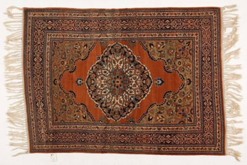 Technik: Sennehknoten; Kette: Baumwolle, Schuss: Baumwolle, Flor: Wolle