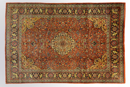 Kette: Baumwolle; Schuss: Baumwolle; Flor: Karakulwolle; Technik: Senneh-Knoten